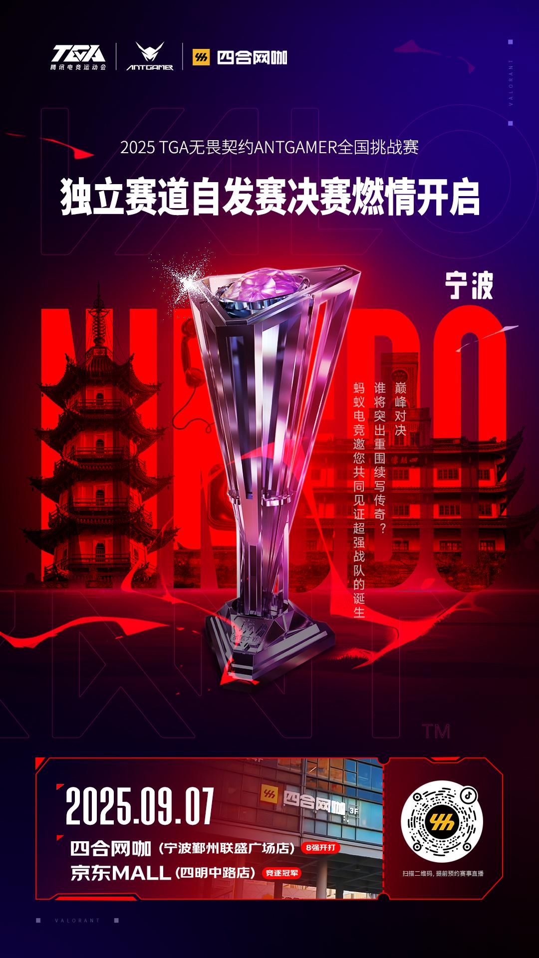 2025年TGA无畏契约ANTGAMER全国挑战赛正酣,作为蚂蚁电竞独家冠名赞助的全民赛事,其独立赛道联合多家头部网吧连锁机构展开角逐,其中四合网咖赛道于9月7...