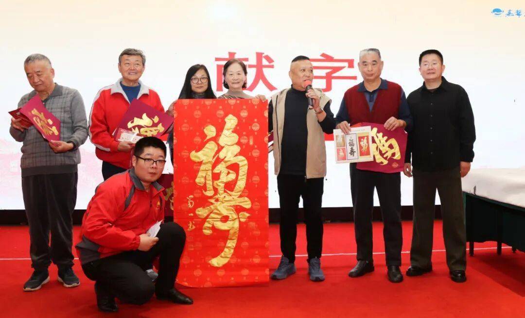 “君子万年,福禄宜之,为此春酒,以介眉寿。”庆典特邀重磅嘉宾——中国书画装裱工艺学院副院长、客座教授,中国书画家联谊会寿文化艺术委员会副秘书长,“中国福抱寿第一人”刘蜀一先生现场赠字。他创作的“福抱寿”合体字内涵深厚,福中有寿、寿中托福,寓意喜庆吉祥、福寿安康,该作品已获中国国家版权局版权注册证书。多年来,刘蜀一先生深耕福寿文化传承,数十次参与海内外大中型公益活动,为弘扬中华优秀传统文化贡献力量,其作品每平尺拍卖价更是高达8000元。