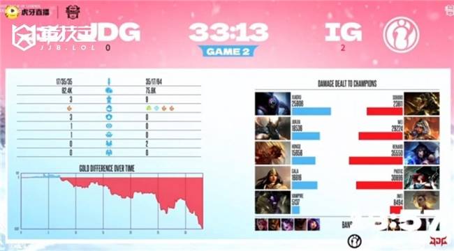 JDG开局打出1换2试图建立节奏,但Wei琪亚娜凭借连续gank和团战收割迅速打出6比0的豪华开局,iG顺势掌控前期节奏并牢牢压制小龙资源。中期团战中,iG多次取胜,仅在一次厄塔汗团被JDG抓到机会击杀Wei琪亚娜,交出赏金。然而随后的小龙魂团与大龙团战中,Photic女枪与Renard阿狸稳定输出,HongQ岩雀失误频出,iG连续拿下两条大龙扩大经济差。最终团战中,24层杀人书的Renard阿狸强势进场,iG团灭JDG,将比分扩大至2比0,手握三个赛点。