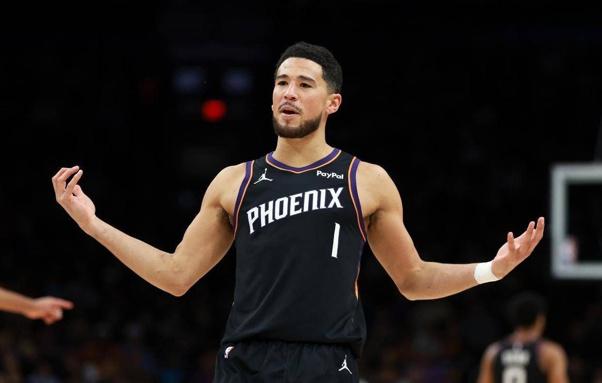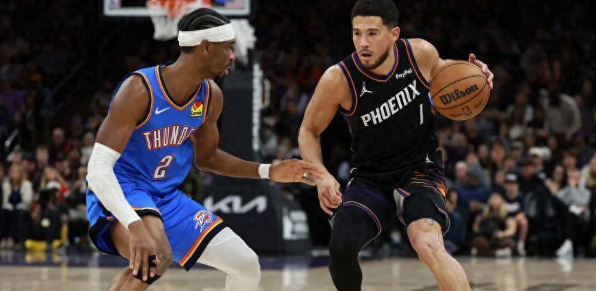 同一天,德文·布克在凤凰城上演了更戏剧性的一幕。 太阳与雷霆的比赛战至最后8秒,双方战成105平。 布克持球压时间,面对两名防守球员的扑防,在身体失衡前强行后仰出手,命中了一记高难度三分准绝杀,只给雷霆留下了0.7秒。 他全场得到24分6篮板9助攻,用一记英雄球为球队带来一场关键胜利。