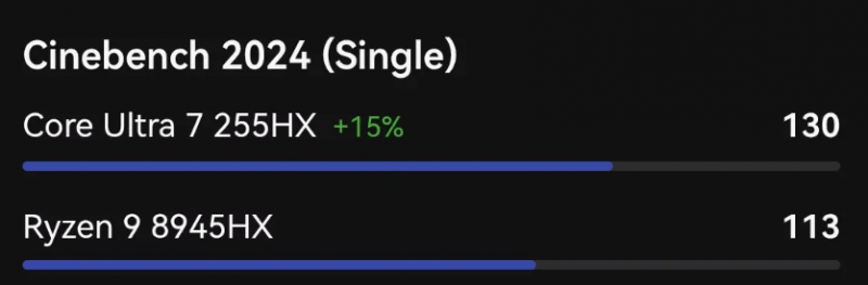 与之对比,联想拯救者R7000P 2025的R9 8945HX处理器虽同样具备强劲性能,但在单核性能上存在差距。从实测数据来看,酷睿Ultra 7 255HX在Cinebench R23单核测试中领先R9 8945HX约5%,在Cinebench 2024单核测试中领先幅度进一步扩大至15%。这种单核性能优势,在依赖高频率的应用场景中,能为Y7000P 2025带来更出色的表现。