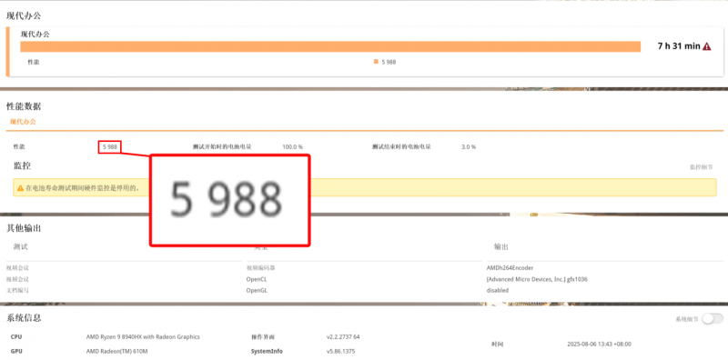 补充测试显示,Office办公1小时,酷睿版掉电7%,锐龙版掉电16%;视频连续播放1小时,酷睿版掉电7%,锐龙版掉电16%——这意味着酷睿版可满足全天移动办公需求,无需频繁寻找电源,而锐龙版更适合固定场景使用。