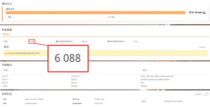 游戏本的续航能力一直是用户所关注的,而两款机型的表现堪称“天差地别”。测试环境统一为:屏幕亮度50%、关闭高刷、音量30%、开启节能模式、集显输出、Wi-Fi/蓝牙全开,采用PCMark 10 Work模式(模拟办公场景):