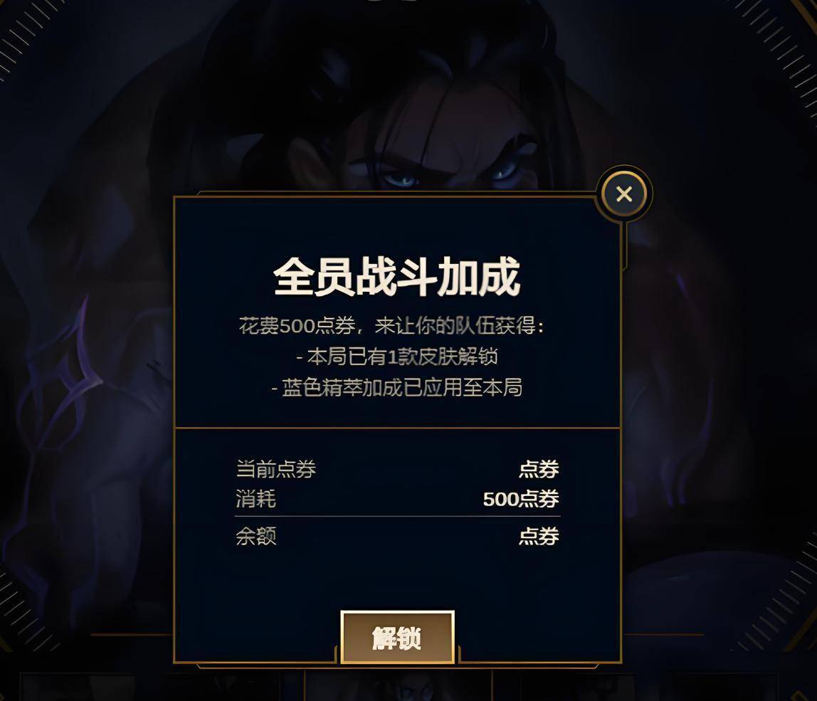 没错,这个功能就是之前端游褒贬不一的“大乱斗付费”,该功能是于2022年时首次上架,后来1个玩家反馈被下架,2023年时又再次上架了不到两个月,而这个功能的内容其实很简单,就是你在大乱斗选人界面时,可以选择花费500点券,给自己的其他队友购买战斗加成,随机解锁一款皮肤,并且游戏结束之后,自己和队友还会获得1~200精粹的零钱