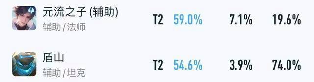 不了解他强度的玩家,可以看看以上数据,在赛季初的顶端局里,元辅有着59%胜率+26.7%BP率,甚至能甩开盾山一条街,属实离谱。