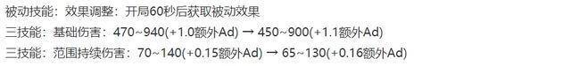 在1.15版本更新后,苏烈不仅三技能会降低8%的基础数值,被动还必须在开局60秒后才能生效,会让他的前期强度大打折扣。