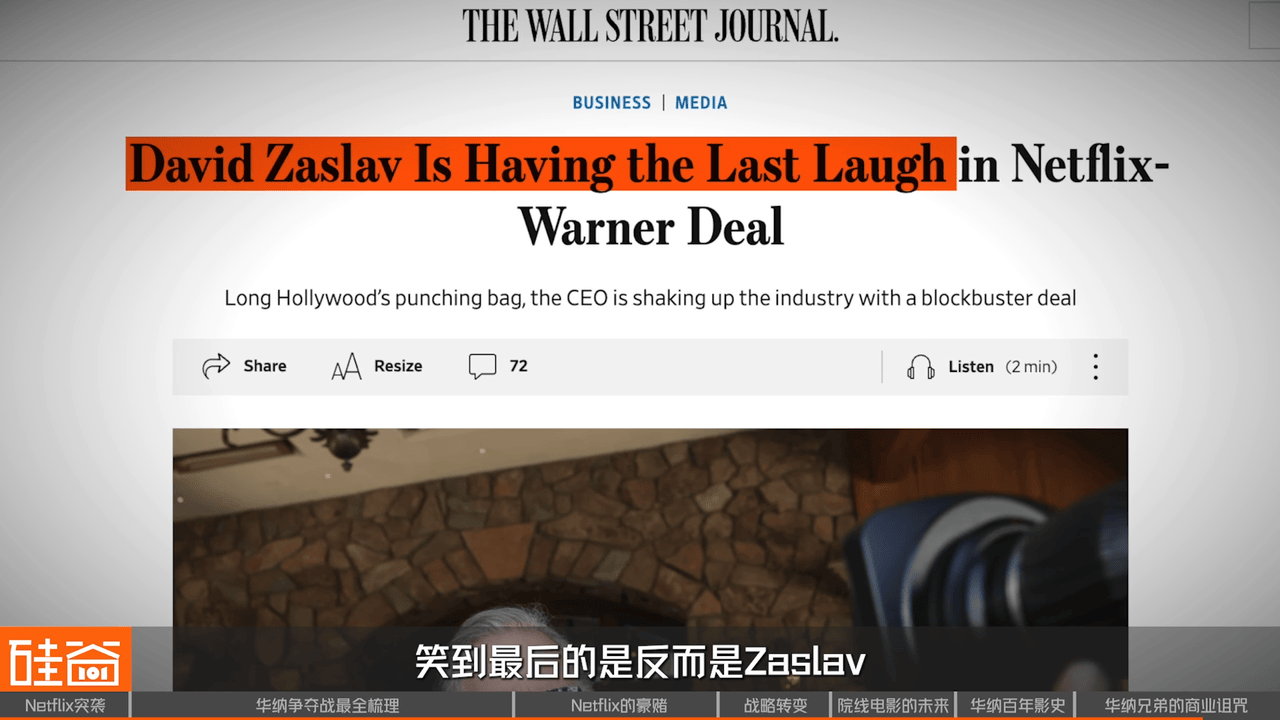 David Ellison不知道的是,在Zaslav没有回复短信时,正在与Netflix紧锣密鼓地敲定最终协议。当天下午,华纳董事会接受了Netflix的报价,股东们将获得每股27.5美元的现金,以及价值4.5美元的Netflix股票,和一家将被分拆出来的有线电视网络公司的股份,第二天全世界都知道了这个消息。