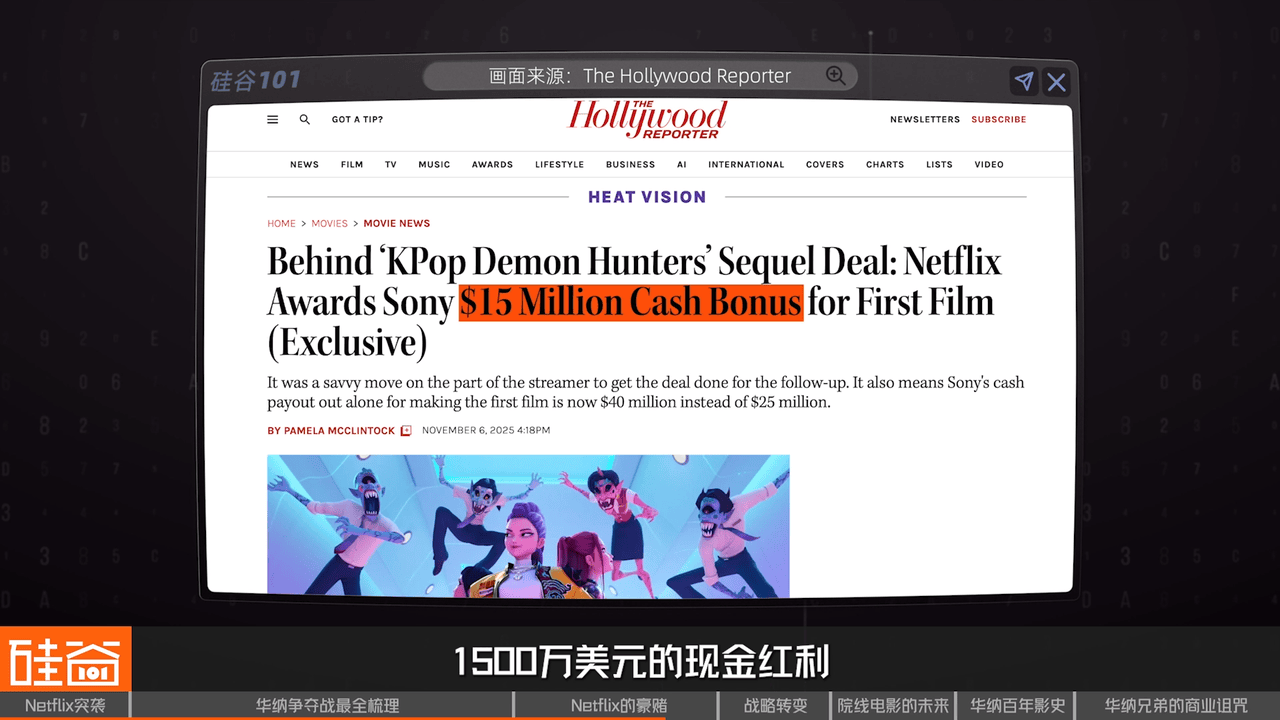 既然说到索尼,当然不能不提去年大火的《K-Pop:恶魔猎人》,这部片子不仅拿下了金球奖最佳动画长片,更以超过5亿次的播放量,成了Netflix历史上最成功的原创电影,但有趣的是,这原本是索尼自己的项目,最后却变成了Netflix的亲儿子。