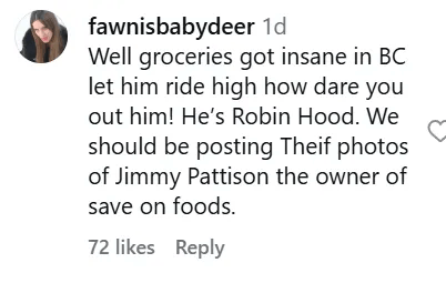 还有人开玩笑说:“也许他偷肉只是为了凑齐下一套穿搭的经费?”更有生活在水深火热中的网友借机吐槽:“现在的超市物价,Loblaws和Save on Foods才是真正的‘抢钱贼’吧!这位欧巴只是在做‘现代罗宾汉’。”
